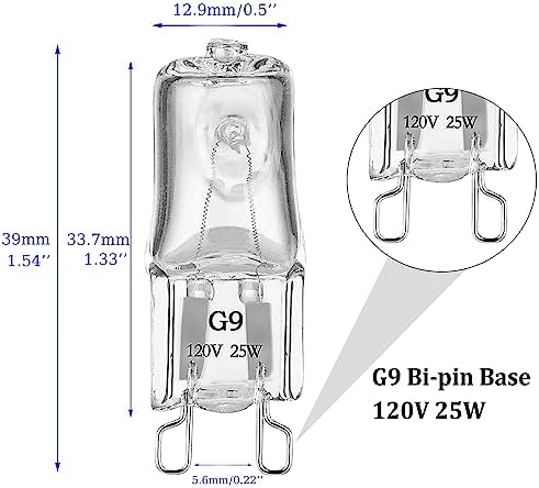 - G9 bi-pin base, 120V 25W Microwave Oven Light, 4 Pack.